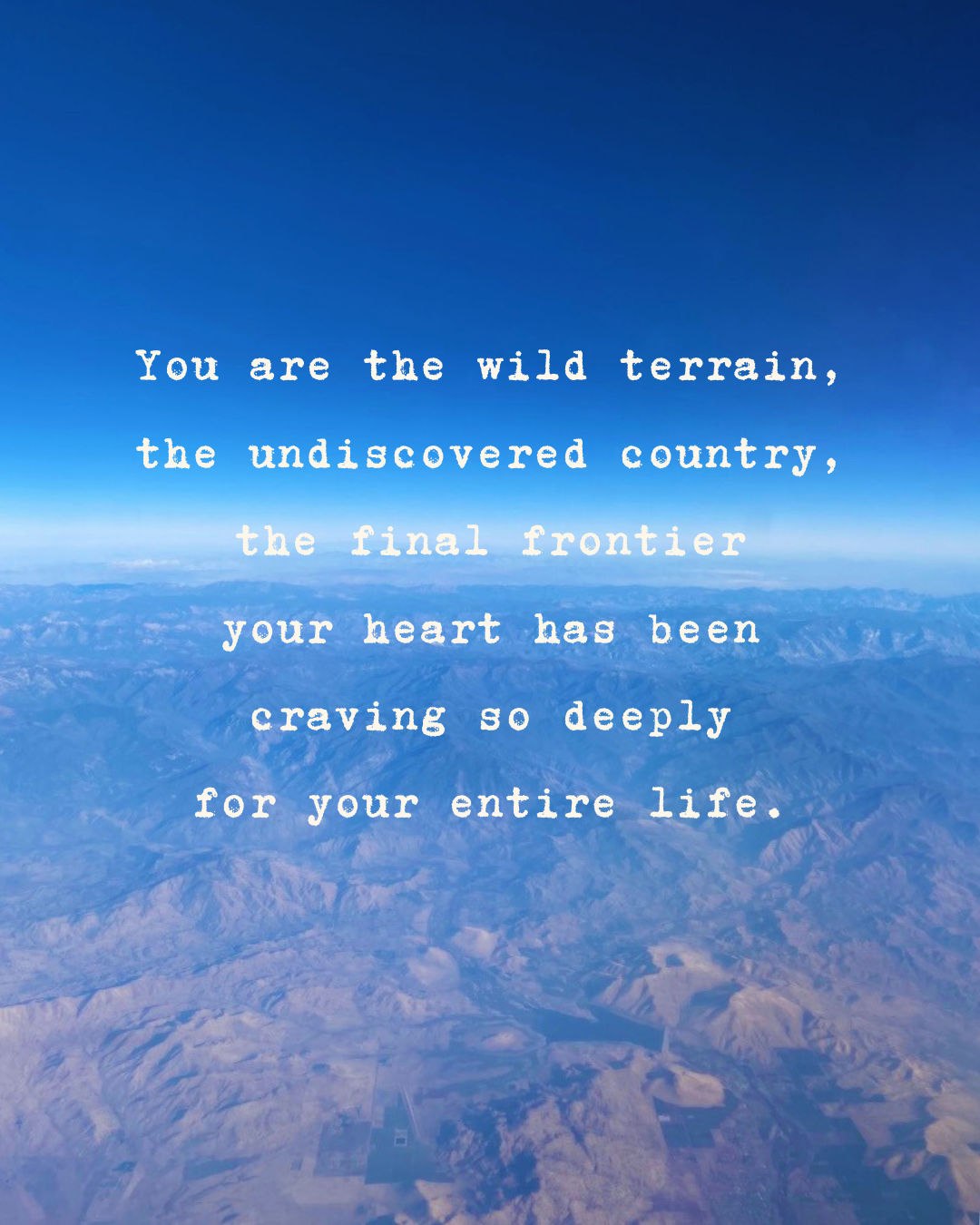 You are the wild terrain, the undiscovered country, the final frontier your heart has been craving so deeply for your entire life.
