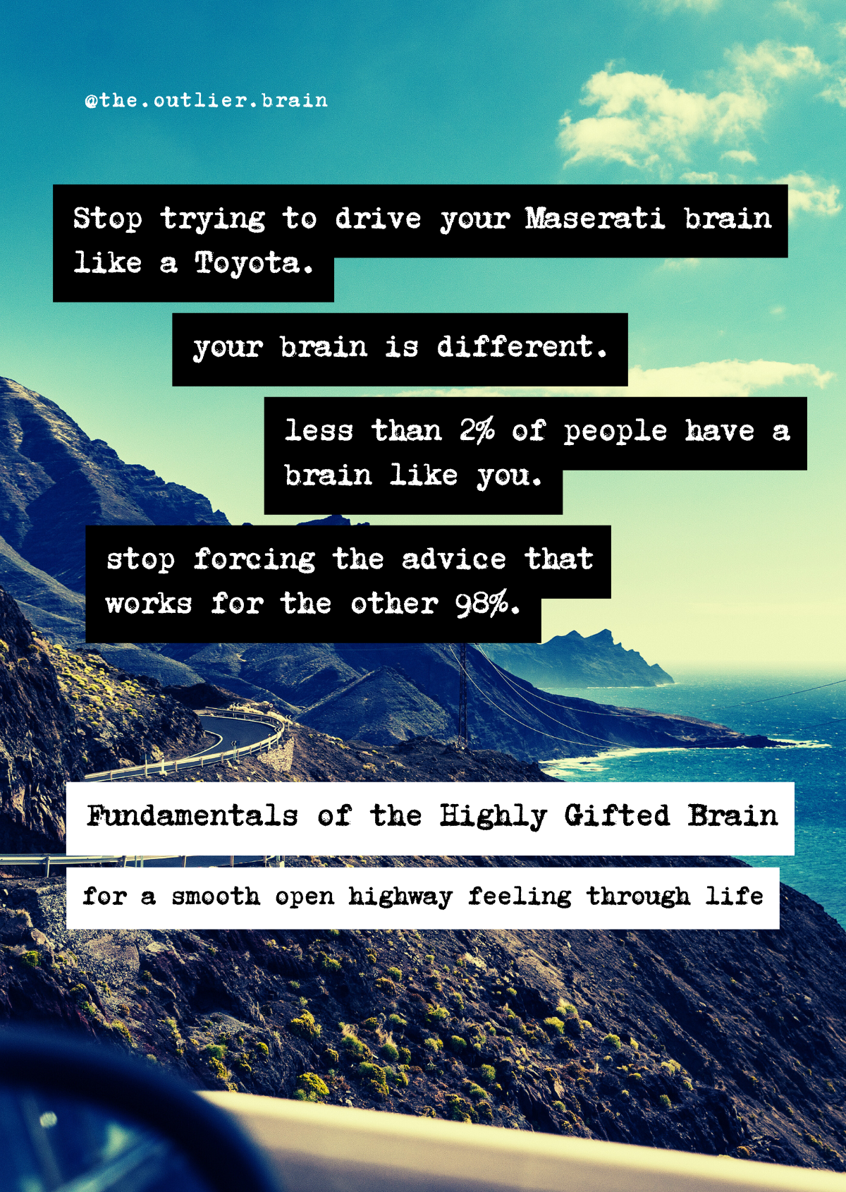 People with gifted brains don't realize that virtually all guidance out there on things related to life satisfaction, stress management, productivity and more simply doesn't really work for us.