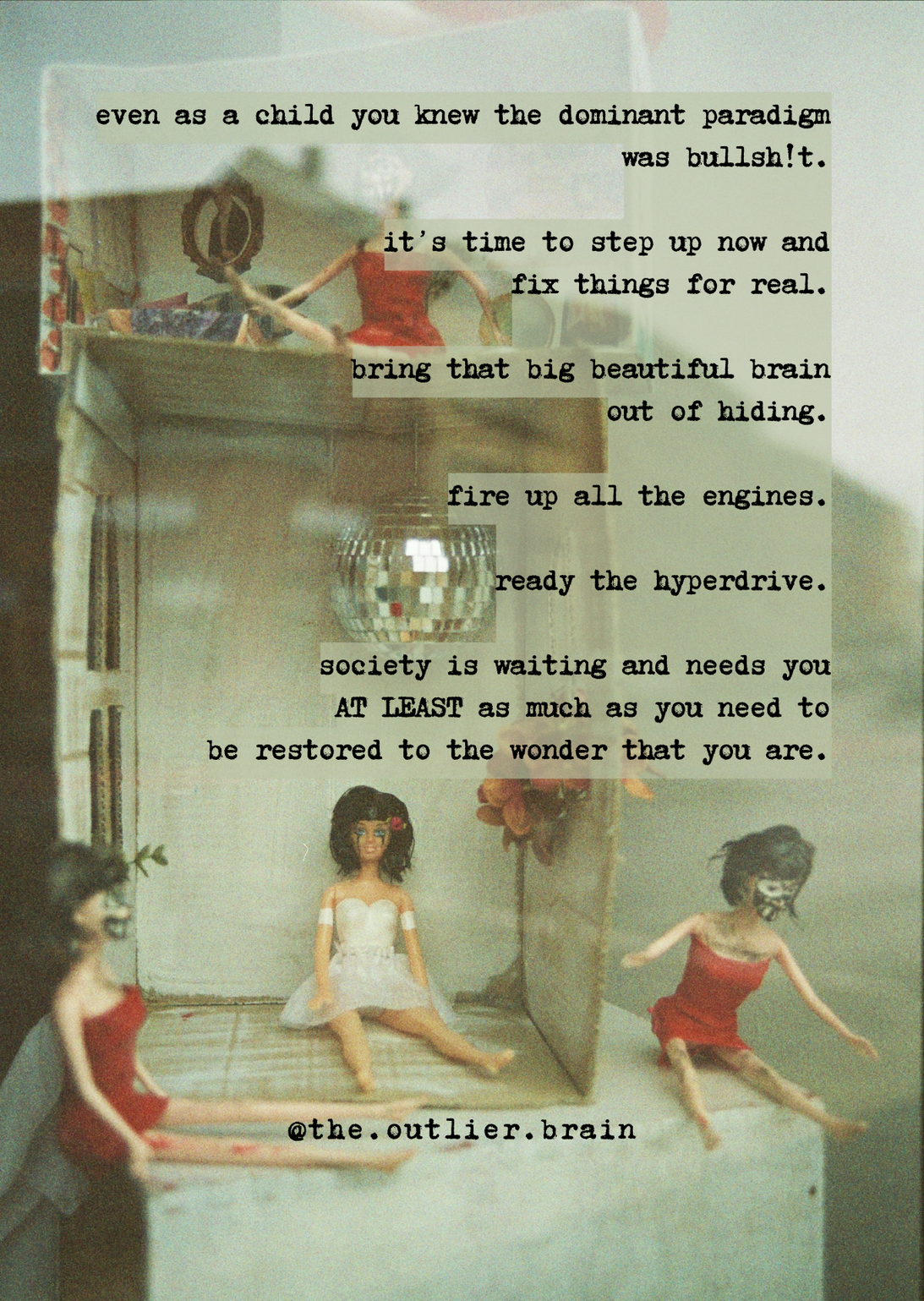 You've got a massive mission to radically transform society, and you want to be sure to use every gorgeous nook and cranny of that amazing outlier/highly gifted brain in a JOYFUL and liberating process.