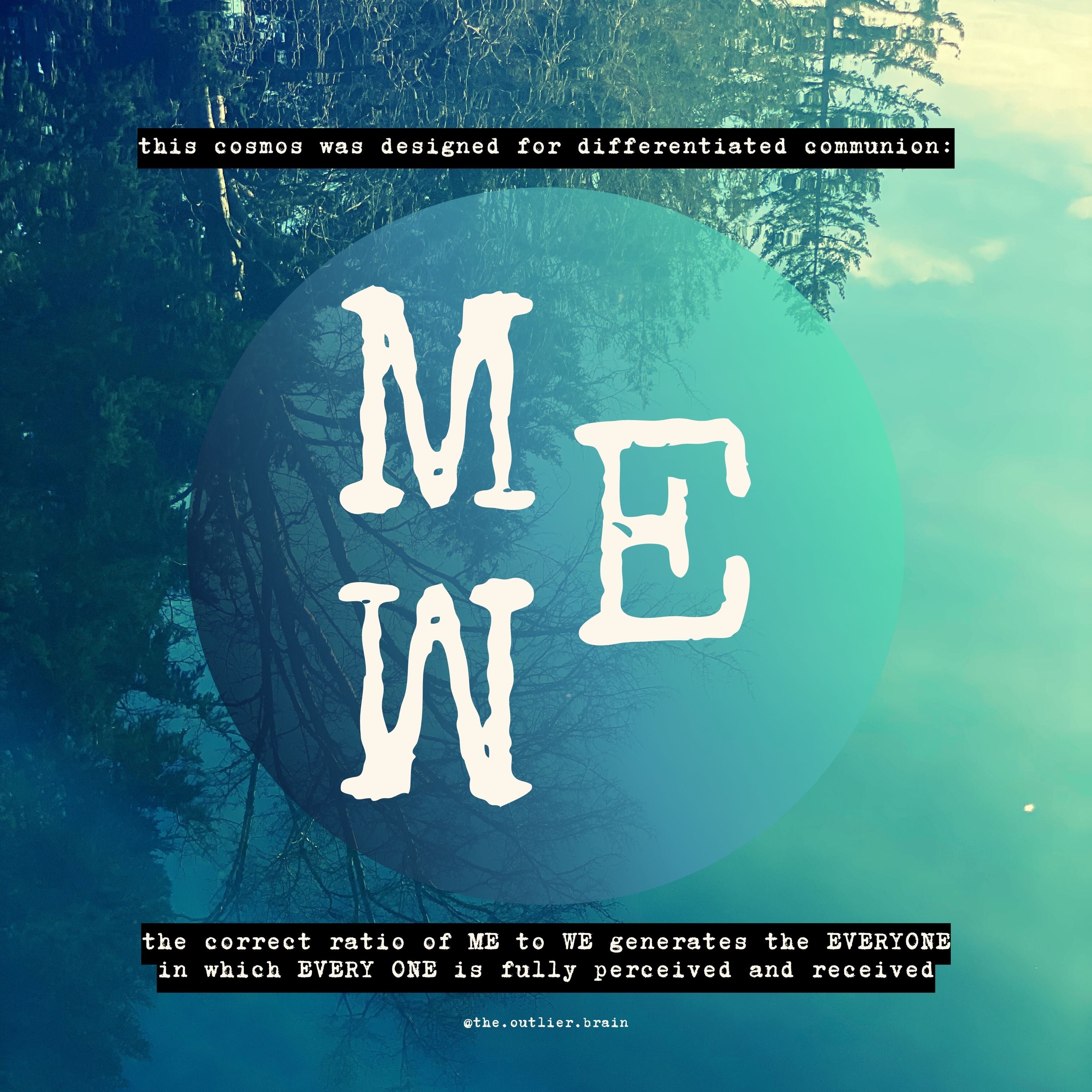 A through line in all of my adult life has been my steadfast inquiry into the nature of the individual - the “ME” - and the workings of community - the “WE” - and seeking to generate the correct ratio of them to each other at both the individual level and the societal level.